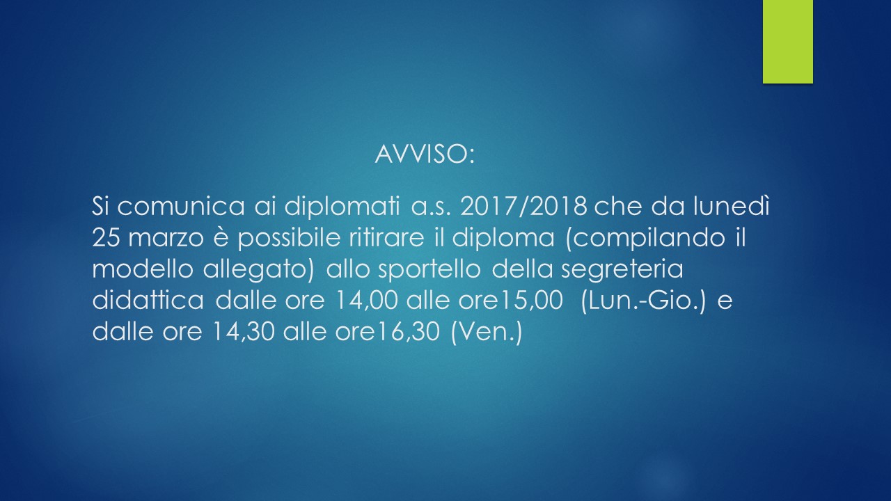 Dal 25 marzo 2019 è possibile ritirare il diploma a.s.2017/2018